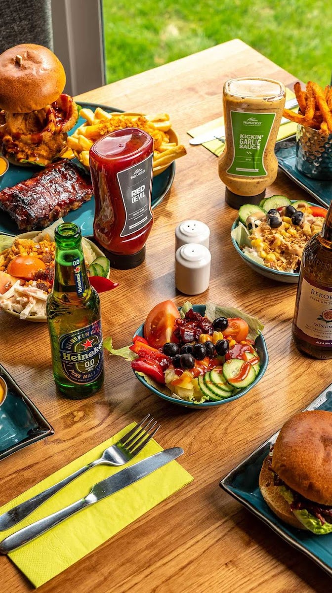 For those who prefer to dine outdoors, the restaurant offers outdoor seating, so you can enjoy your meal al fresco, especially when the weather is nice. Plus, for ultimate convenience, they provide a range of service options, including delivery, drive-through, and takeaway, meaning you can enjoy your favorite Harvester meals from the comfort of your home.